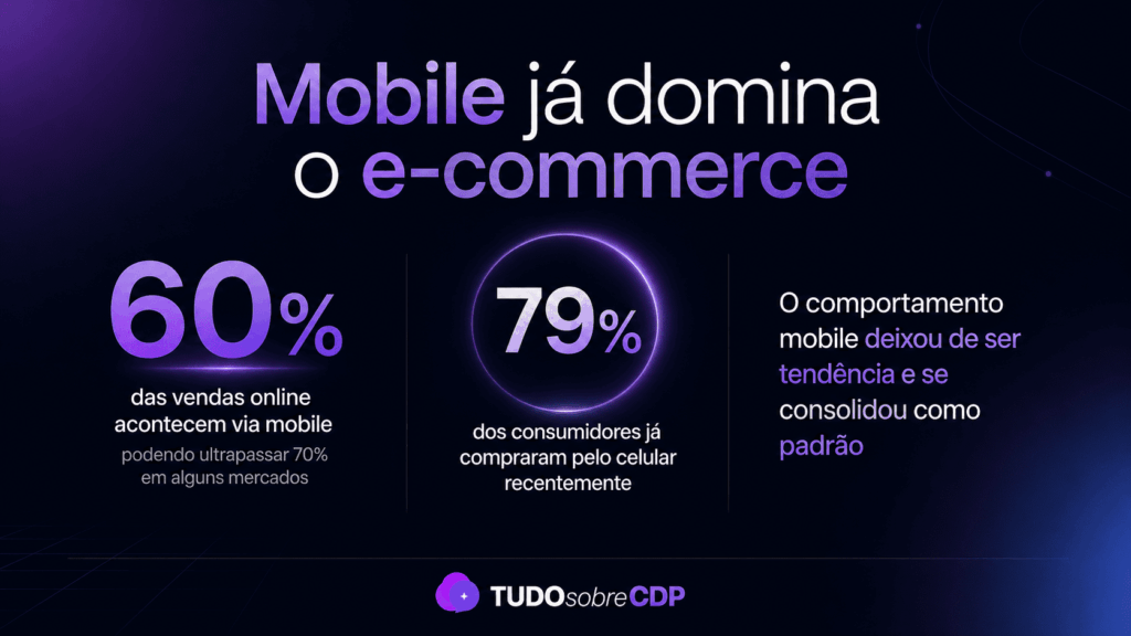 Essa percepção não acontece por acaso. Os dados mais recentes de mercado reforçam o papel do mobile como protagonista no e-commerce, com cerca de 60% das vendas online já realizadas por dispositivos móveis, podendo ultrapassar 70% em alguns mercados.